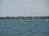 Racing was scheduled to start at 1455, so we planned to meet up at 1300 at the club. I was half an hour late for my own party, thanks in part to heavy Saturday afternoon traffic and to forgetting my sunscreen. By the time we got out to the boat, we had only one hour until first gun. No time for more than a quick practice. We had a nice steady breeze from the SSW at about 12 knots, so the #2 genoa was hoisted and we put her on the wind for a few tacks. Then we turned a nearby mark and hoisted the spinnaker. After a couple of successful gybes, we were ready to clean up and get ready to race.